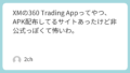 FX XMの360 Trading Appってやつ、APK配布してるサイトあったけど非公式っぽくて怖いわ。