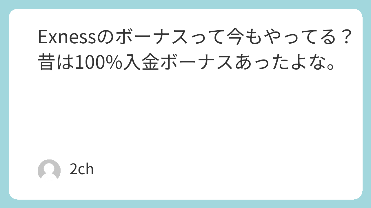 Exnessのボーナスって今もやってる?昔は100%入金ボーナスあったよな。