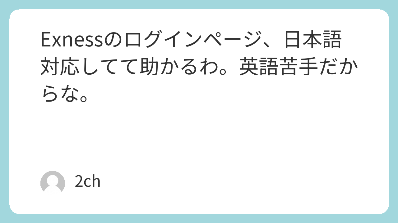 Exnessのログインページ、日本語対応してて助かるわ。英語苦手だからな。