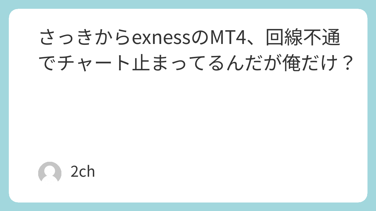 さっきからexnessのMT4、回線不通でチャート止まってるんだが俺だけ?