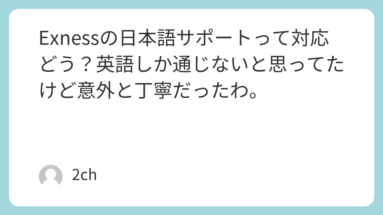 Exnessの日本語サポートって対応どう?英語しか通じないと思ってたけど意外と丁寧だったわ。
