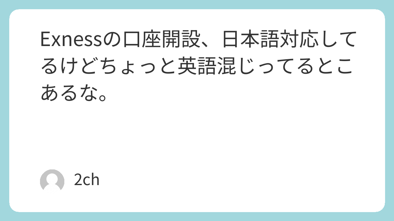 Exnessの口座開設、日本語対応してるけどちょっと英語混じってるとこあるな。
