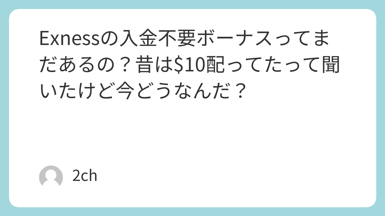 Exnessの入金不要ボーナスってまだあるの?昔は$10配ってたって聞いたけど今どうなんだ?
