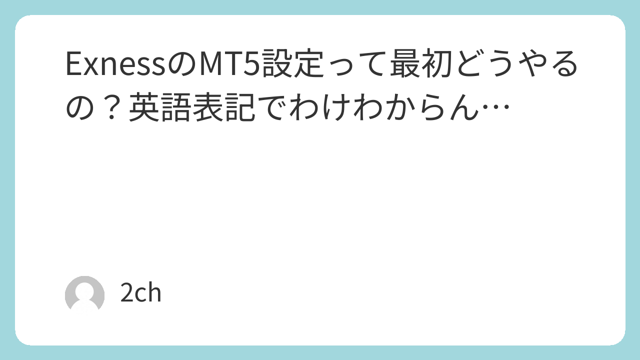 ExnessのMT5設定って最初どうやるの?英語表記でわけわからん…