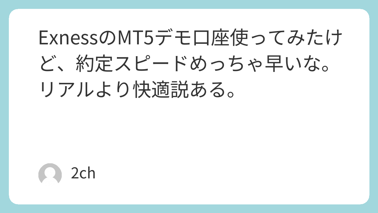 ExnessのMT5デモ口座使ってみたけど、約定スピードめっちゃ早いな。リアルより快適説ある。
