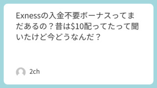 1 名前:名無しさん 投稿日:2025/11/02(日) 02:00:01Exnessの入金不要ボーナスってまだあるの?昔は$10配ってたって聞いたけど今どうなんだ?2 名前:TraderA 投稿日:2025/11/02(日) 02:01:...