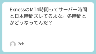 1 名前:TraderA 投稿日:2025/11/02(日) 02:51:03.45 ID:fxabc123ExnessのMT4時間ってサーバー時間と日本時間ズレてるよな。冬時間とかどうなってんだ?2 名前:名無しさん 投稿日:2025/1...