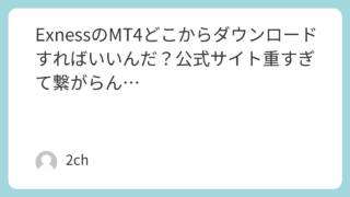 1 名前:TraderA 投稿日:2025/11/02(日) 02:50:11.22 ID:fx123abcExnessのMT4どこからダウンロードすればいいんだ?公式サイト重すぎて繋がらん…2 名前:名無しさん 投稿日:2025/11/0...