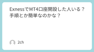 1 名前:名無しさん 投稿日:2025/11/02(日) 01:12:45ExnessでMT4口座開設した人いる?手順とか簡単なのかな?2 名前:名無しさん 投稿日:2025/11/02(日) 01:13:10メール認証だけで始められるよ。...
