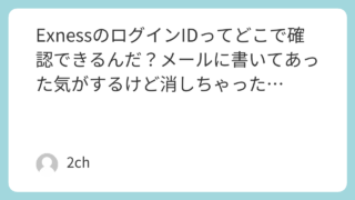 1. TraderX 2025/11/02(日) 02:15:34ExnessのログインIDってどこで確認できるんだ?メールに書いてあった気がするけど消しちゃった…2. FX侍 2025/11/02(日) 02:16:22口座開設メールに「...