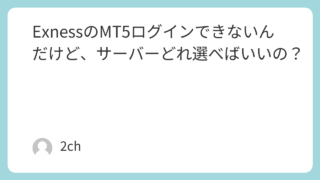 1 名前:TraderA 投稿日:2025/11/02(日) 02:35:11.23ExnessのMT5ログインできないんだけど、サーバーどれ選べばいいの?2 名前:名無しのFXer 投稿日:2025/11/02(日) 02:36:04.8...