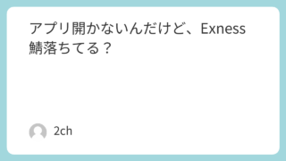 1. 名無しさん 2025/11/02(日) 02:40:12アプリ開かないんだけど、Exness鯖落ちてる?2. 名無しさん 2025/11/02(日) 02:40:44ログイン画面でずっと読み込み中になるわ…3. 名無しさん 2025/...
